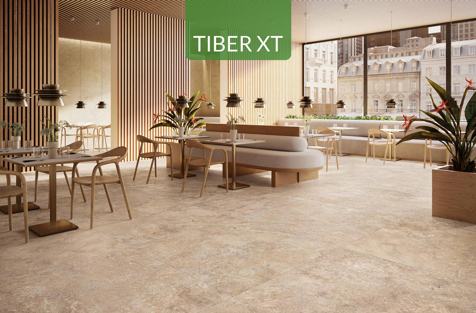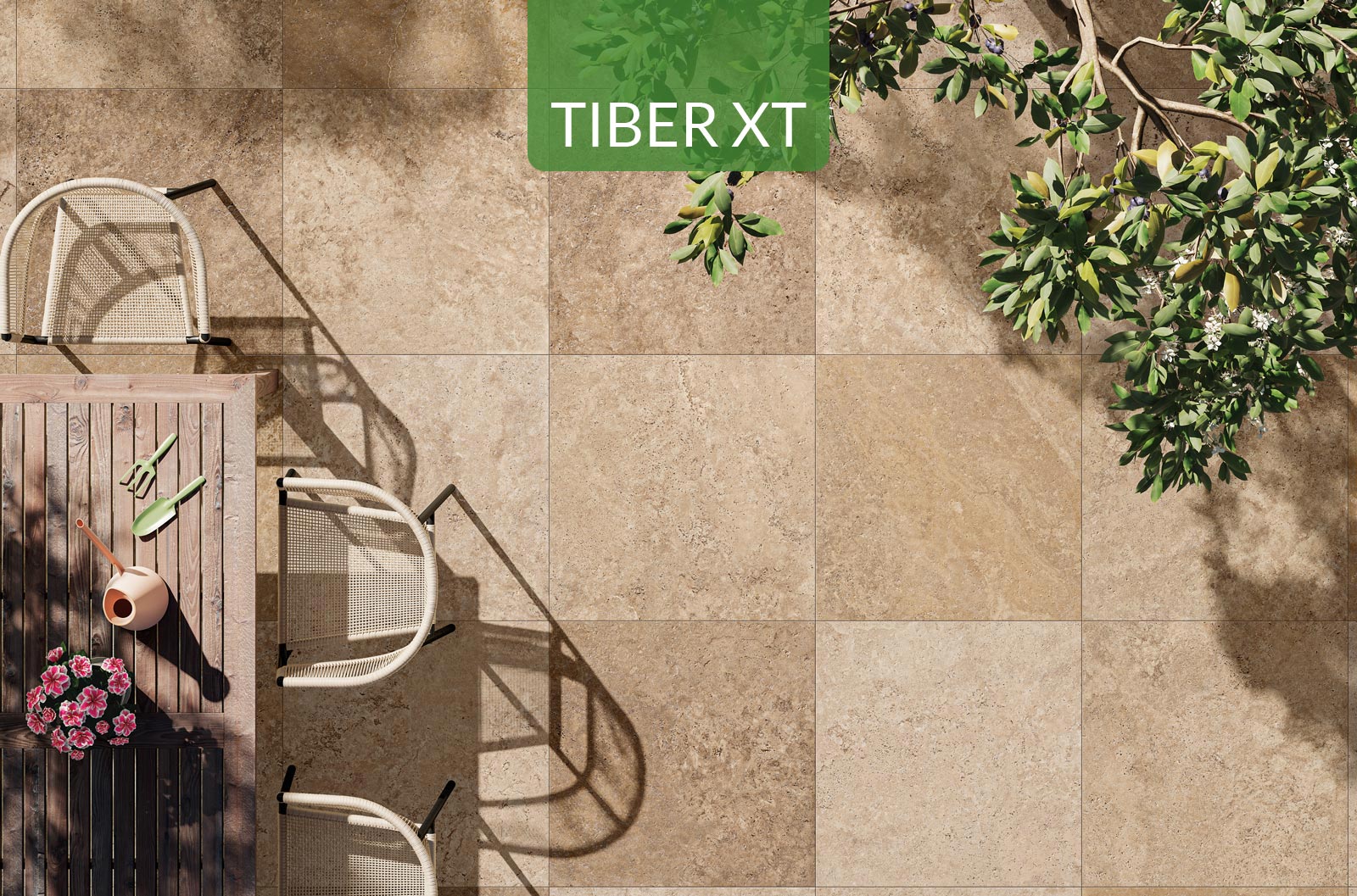 Tiber, une collection inspirée du Travertin, l’une des pierres les plus utilisées par les romains. La collection est conçue pour l’extérieur avec les versions en 9 mm d’épaisseur et en 20 mm d’épaisseur (adaptée pour la pose surélevée) ainsi que pour l’intérieur en 9 mm d’épaisseur. Tiber reproduit fidèlement le Travertin dans les tonalités de beige et est parsemée de petites aspérités. La collection est déclinée en deux versions : Tiber Natural respectant le dénuançage naturel de cette pierre de caractère et Tiber Light étant une sélection élégante des faces les plus claires.