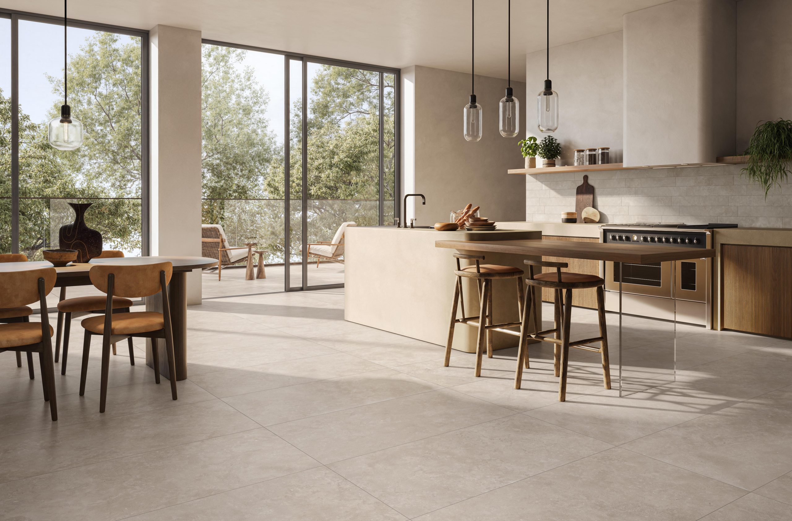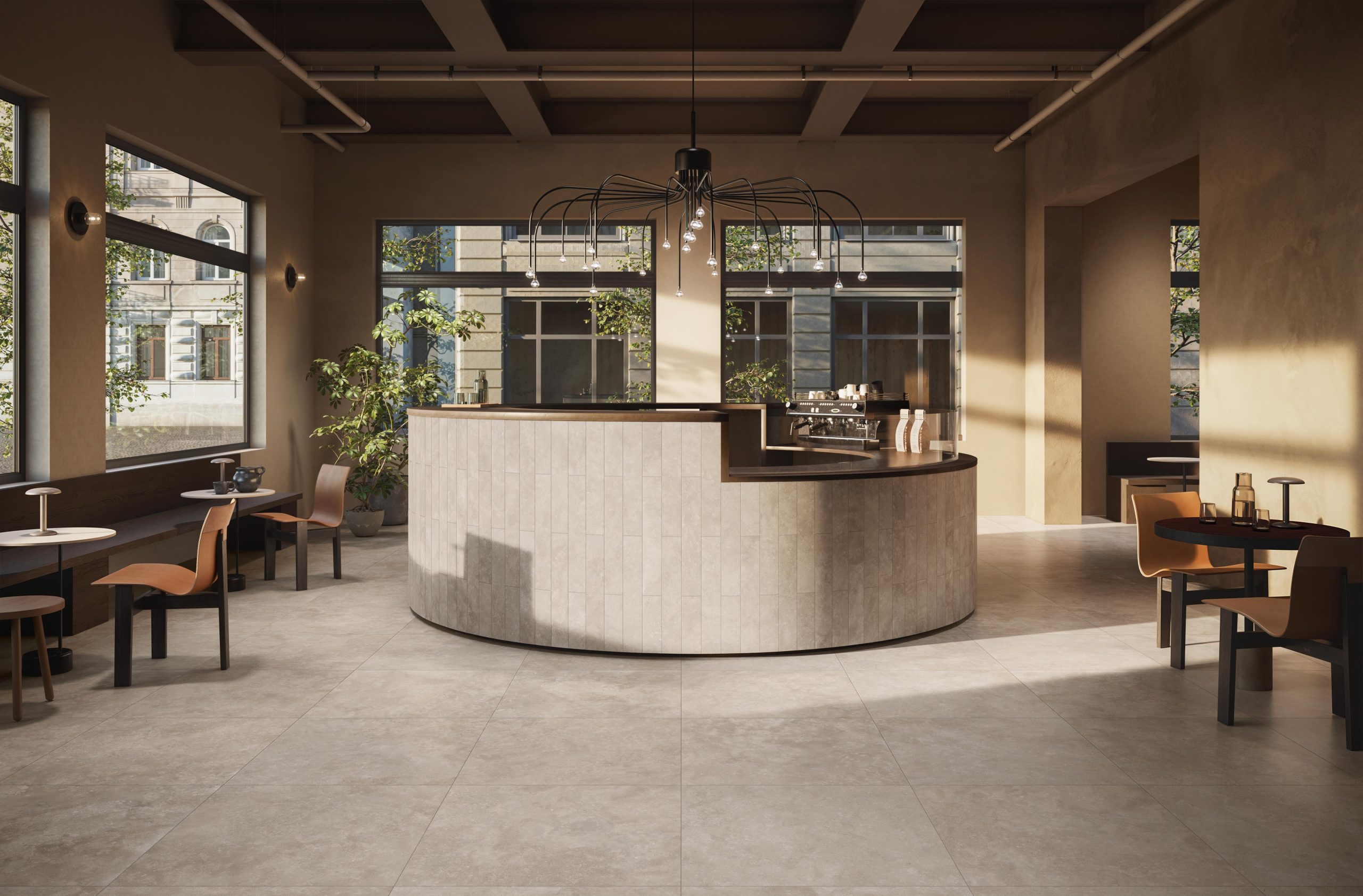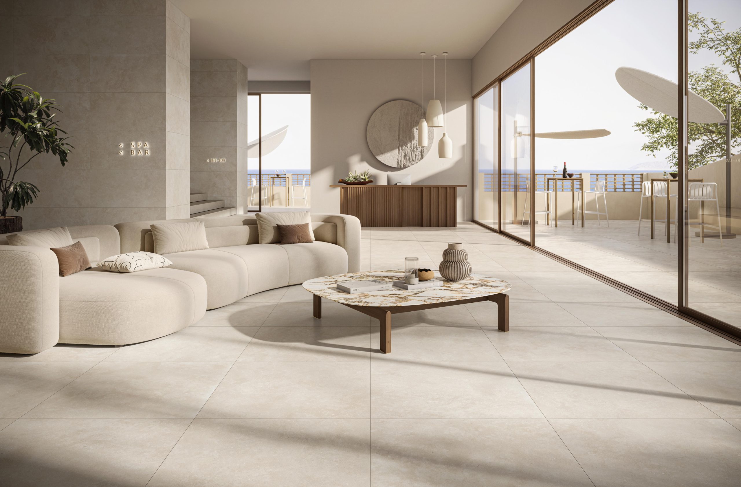 Novoceram a imaginé Théra comme une matière de transition, à la frontière entre nature et architecture. Son esthétique délicate traduit la sérénité des paysages de pierre, tout en apportant la modernité épurée du béton. Cette double identité lui confère une polyvalence rare : elle s’adapte aussi bien aux espaces minimalistes qu’aux ambiances plus chaleureuses.