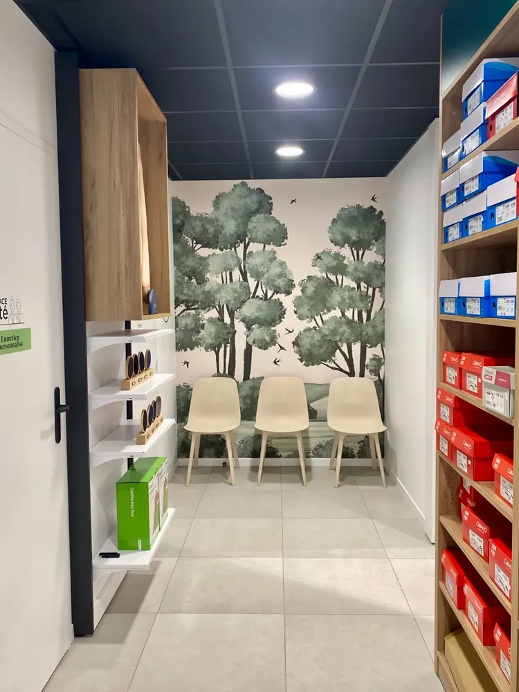 L’agencement a été pensé pour fluidifier le parcours client, structurer clairement les différents univers de vente et créer une ambiance rassurante, propice à l’échange et au conseil.