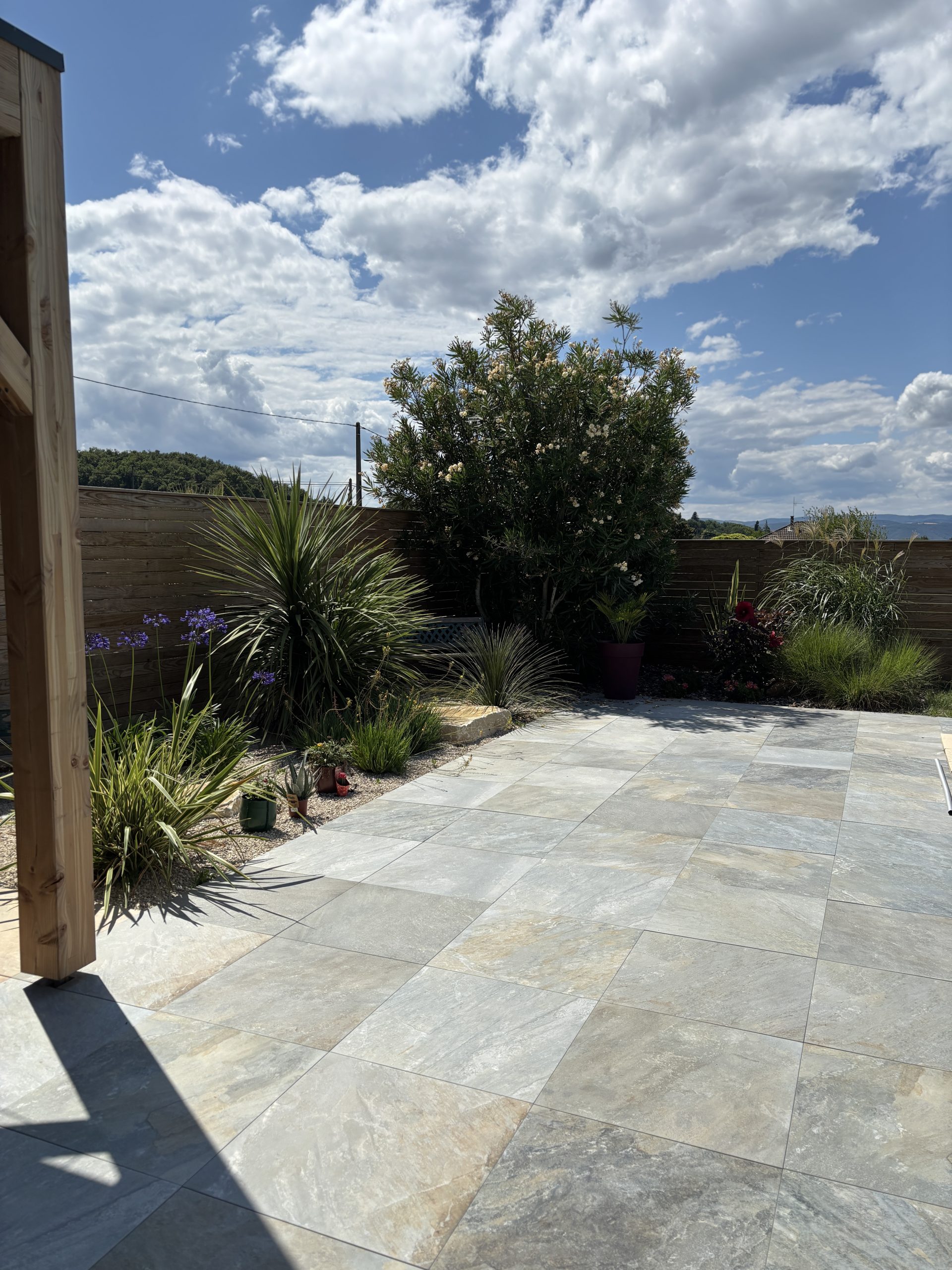 Dans la Drôme, Cédric Pierre Paysage a réalisé un aménagement extérieur autour d’une piscine, pensé pour allier confort, esthétique et convivialité.